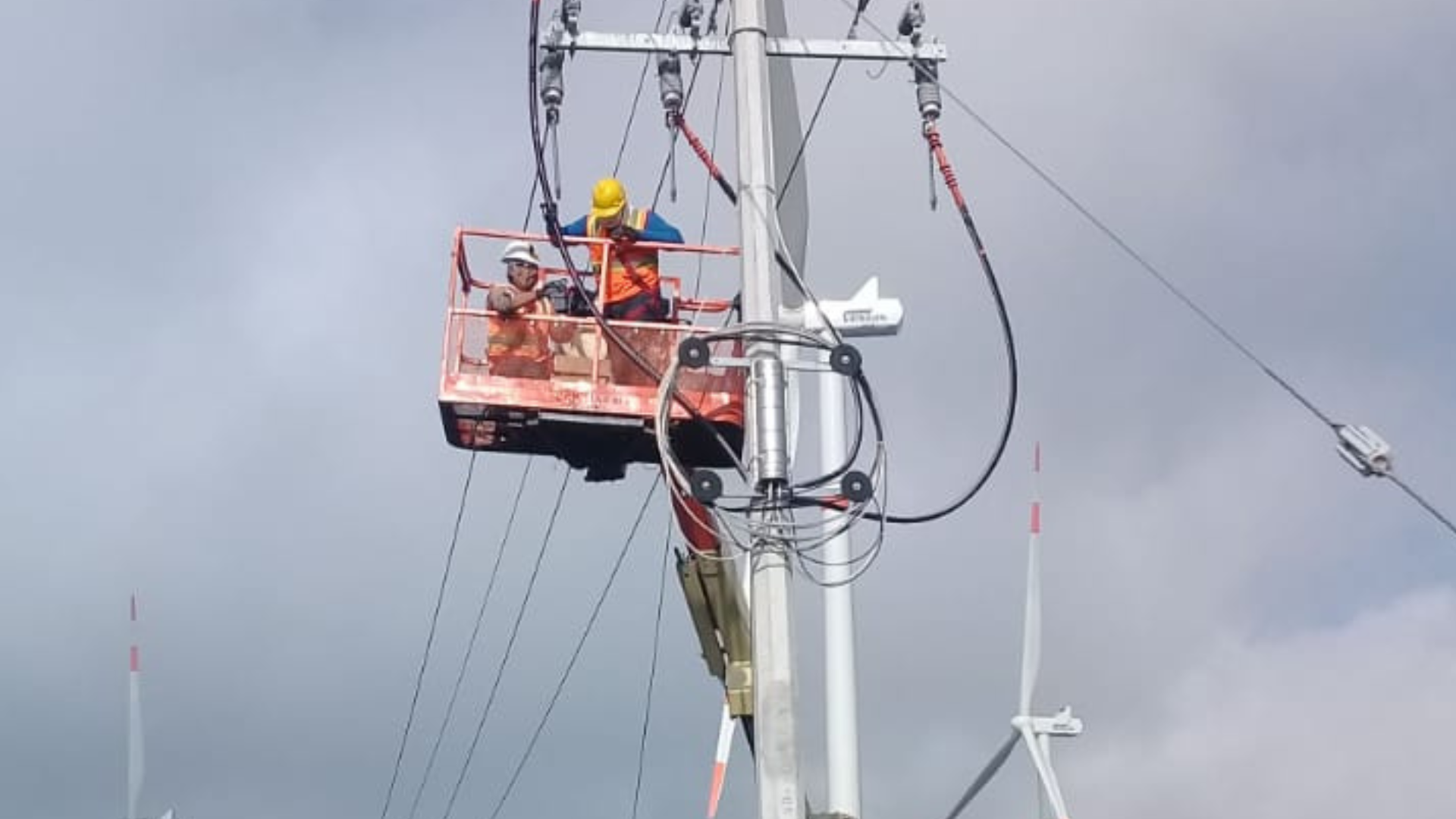 - Instalación de circuito trifásico con conductor ASCR/AS 336 y cable OPGW, incluyendo vestido de postes, tendido, regulado, engrapado y cierre de puente.